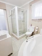 Room 16: Spacious room with 1x Double Bed & 3/4 Bed, En-Suite Bathroom with Bath & Shower, Balcony shared with Room 17, Fridge, Microwave, Sitting Area, Walk-in Cupboard, DSTV, Tea / Coffee Making Facilities, Amenities, Towels, Daily Cleaning Service, Free Wifi in room and on premises, Laundry Service available at an extra cost